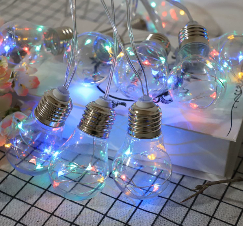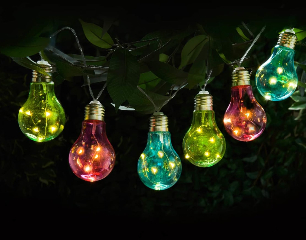 Solar Powered 12 Coloured Light Bulb String LED Lights